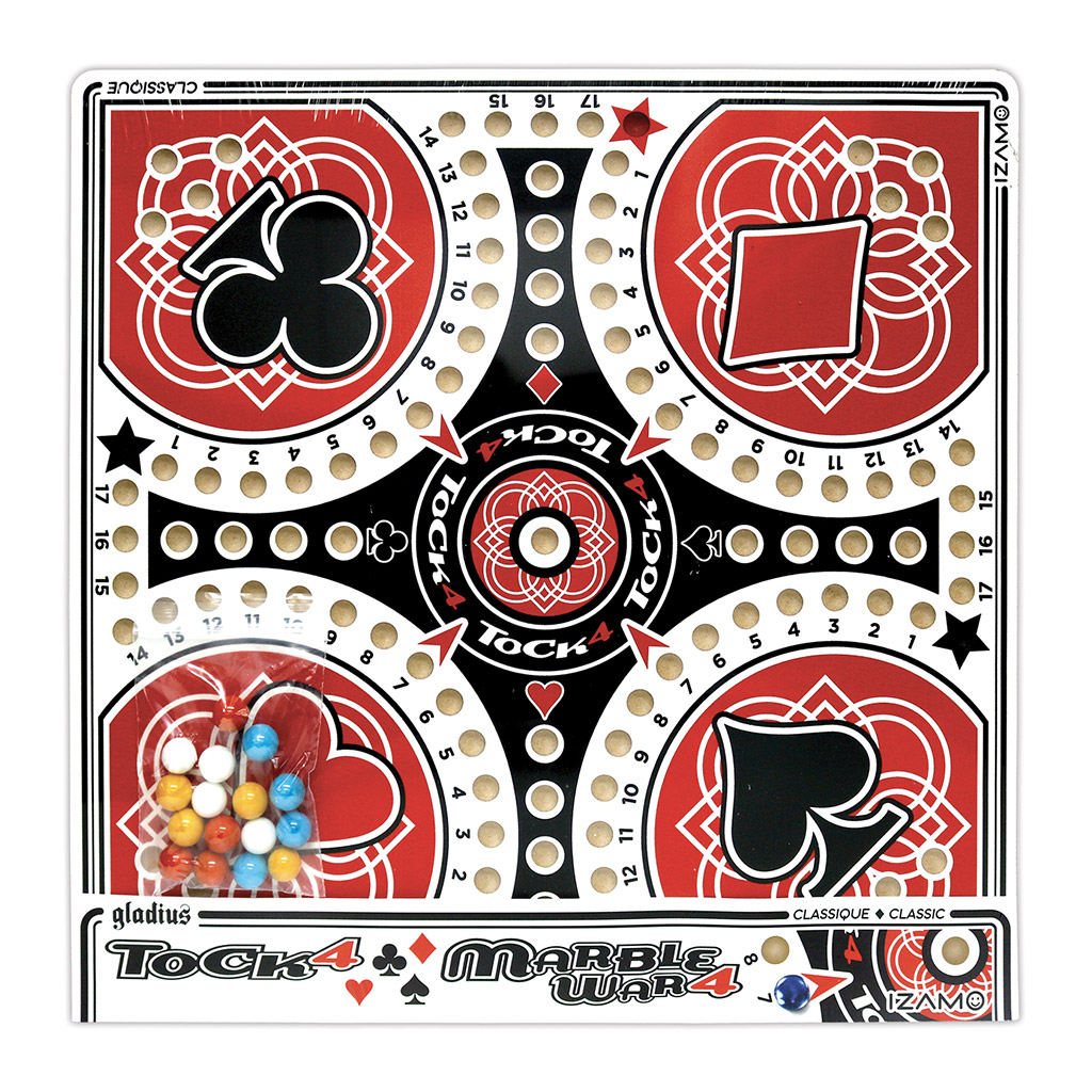 Once you have your cards in hand, start the game and move your 4 marbles around the beautifully illustrated board. Play your cards as strategically as possible to get your marbles to a safe place and eliminate your opponents’ marbles along the way! Beware of your opponents! That said, if you’re playing in teams, remember to favor your teammates and don’t hesitate to give them a boost! The first player (or team) to get all their marbles in their finish area wins the game!
