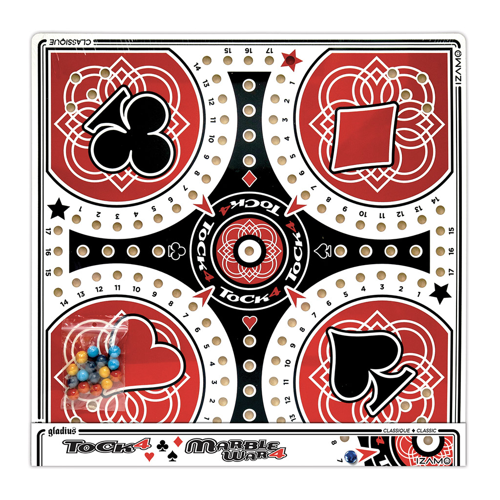 Once you have your cards in hand, start the game and move your 4 marbles around the beautifully illustrated board. Play your cards as strategically as possible to get your marbles to a safe place and eliminate your opponents’ marbles along the way! Beware of your opponents! That said, if you’re playing in teams, remember to favor your teammates and don’t hesitate to give them a boost! The first player (or team) to get all their marbles in their finish area wins the game!