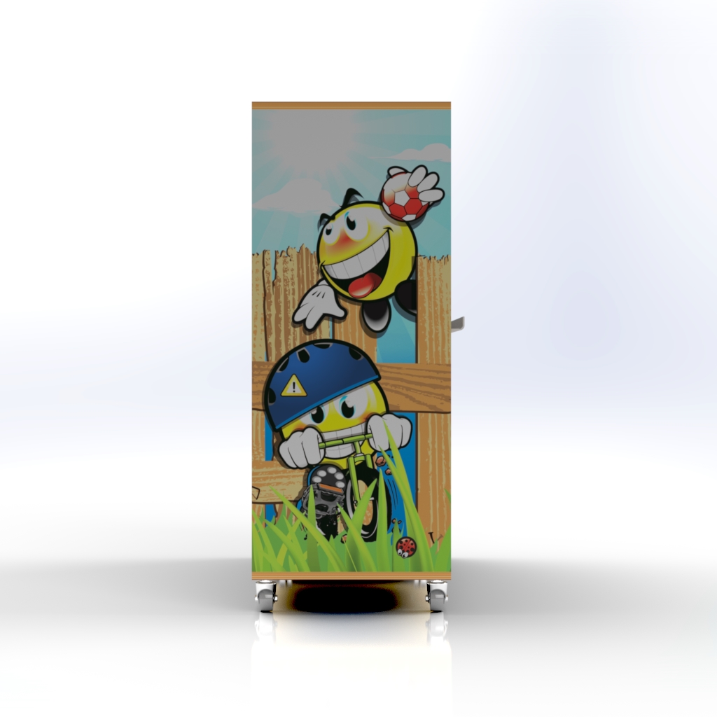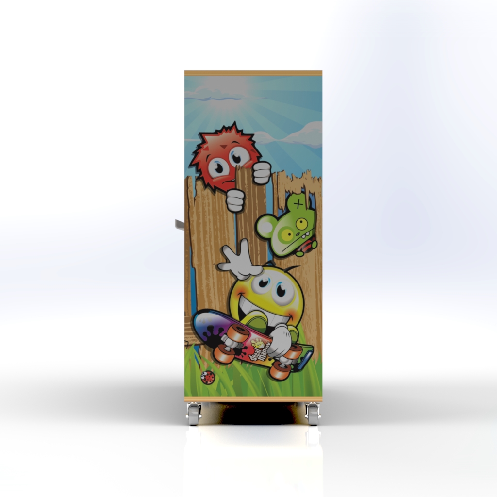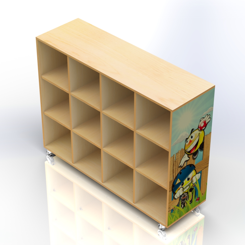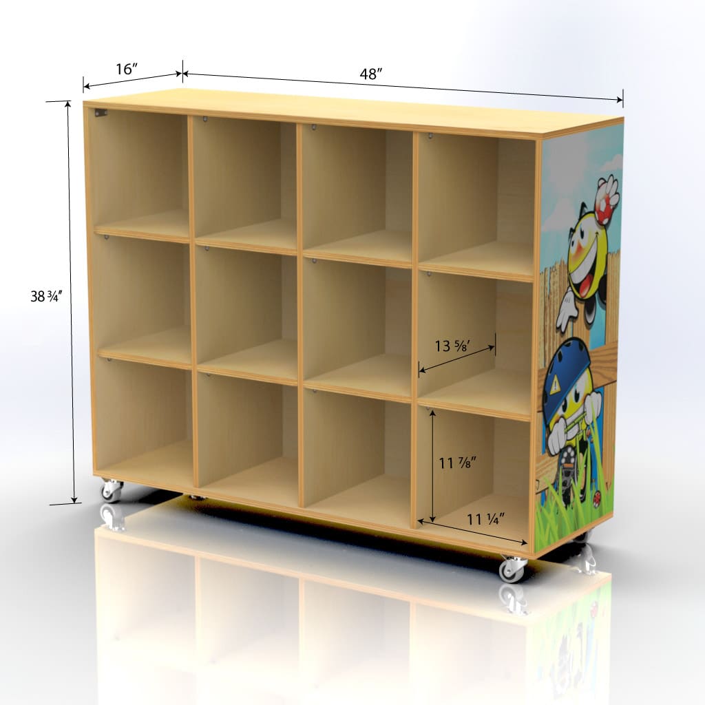 This storage unit will liven up your classroom with its colourful graphics. A dry-erase board is provided in the back to maximize utility.