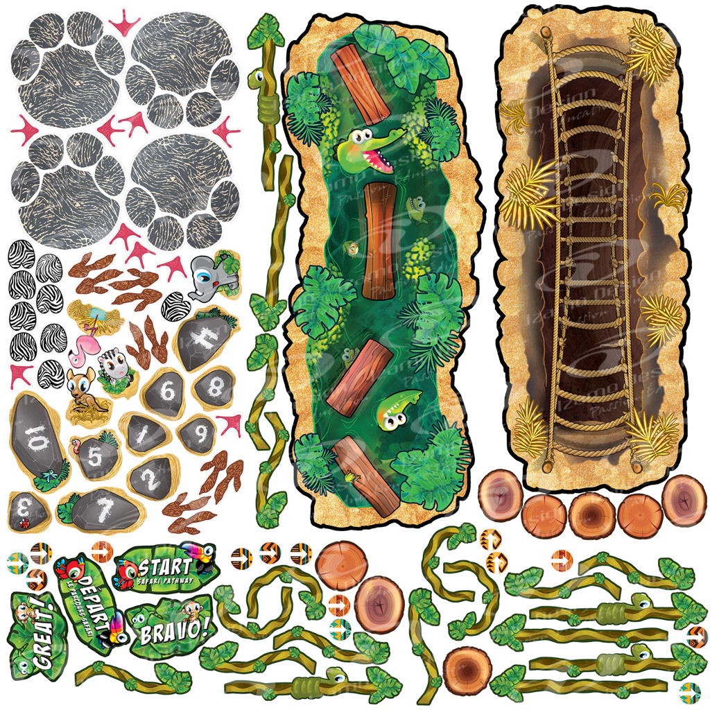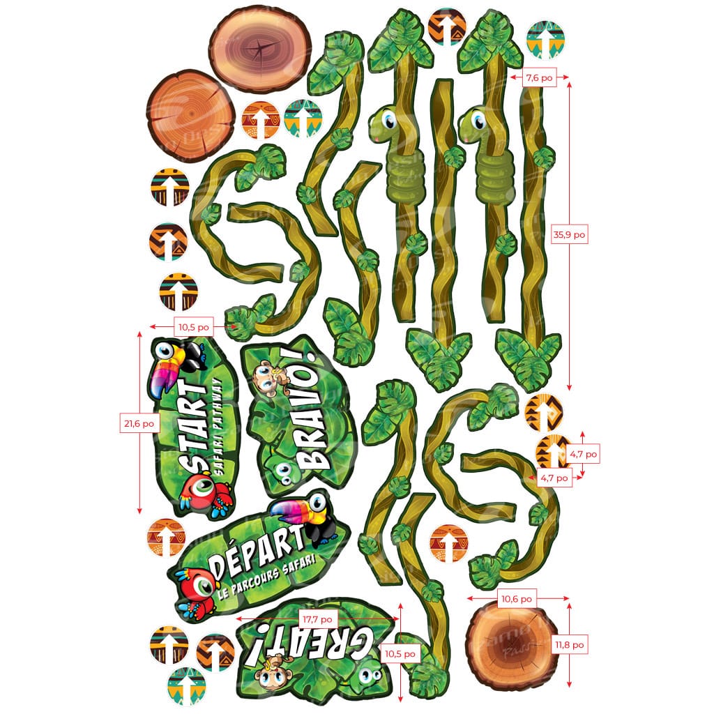 Before installing, we suggest that you unwrap all the layout’s parts and lay them flat for a few days. This will allow the stickers to slacken, making the installation of the parts on the floor easier.