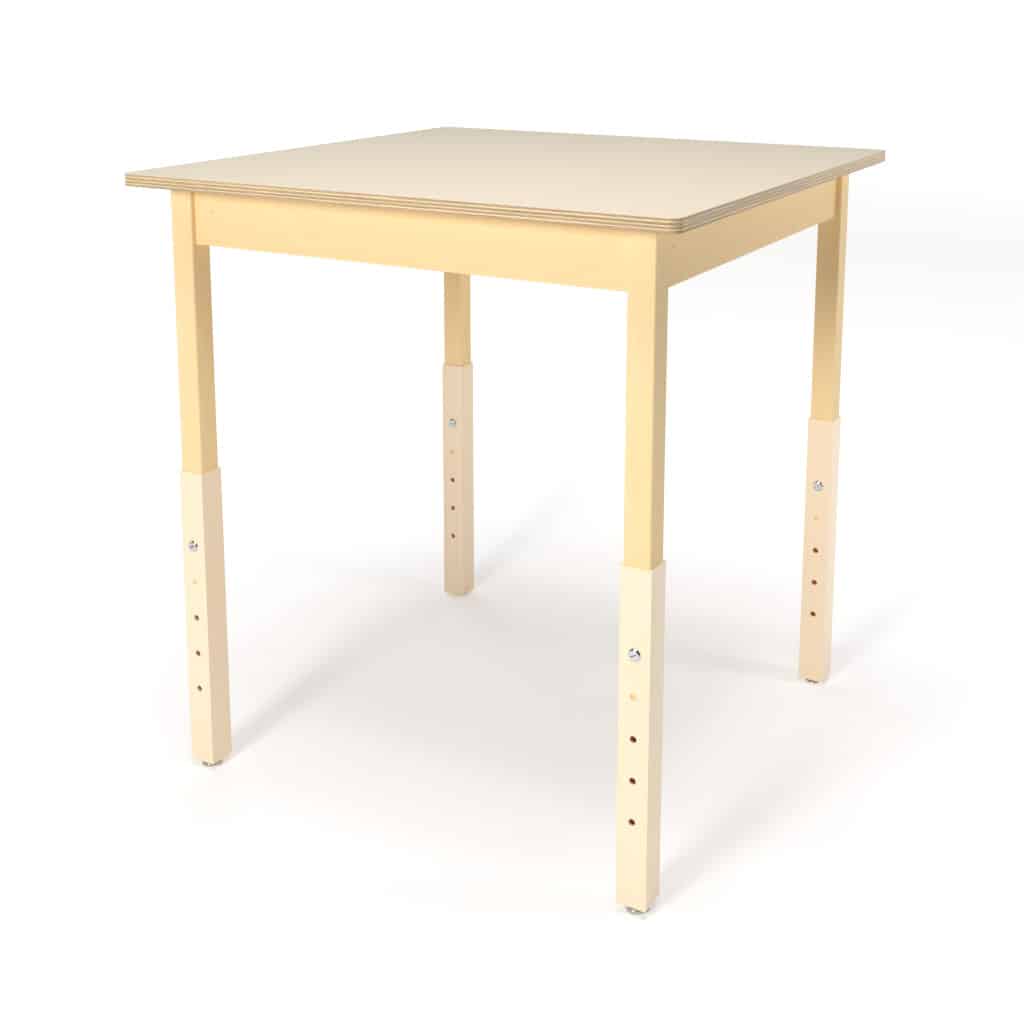 Available with adjustable heights and in 6 useful geometric shapes, these convivial wood tables can be used for all kinds of activities.