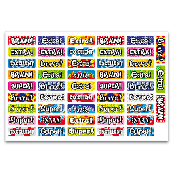 Practical stickers to encourage students, stick them to their homework, dictations, exams and much more. Sticker sheets are made from high-quality, sparkly holographic material.