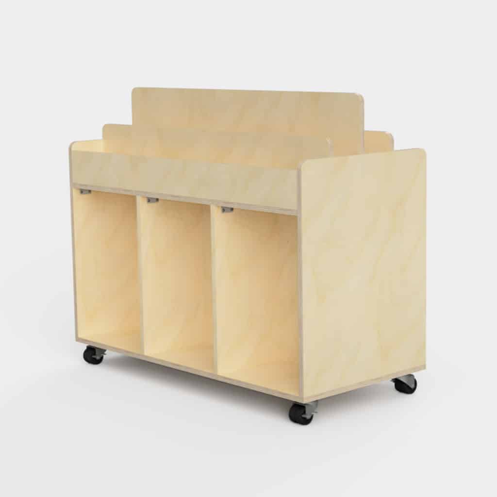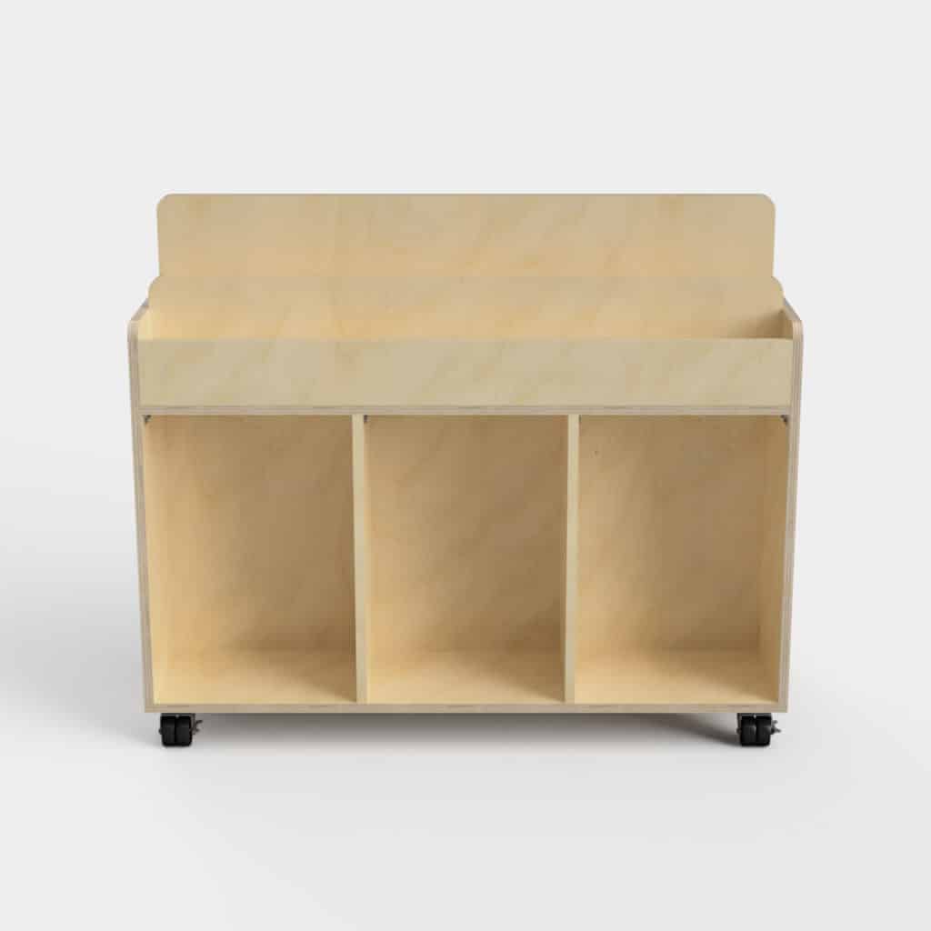 Cette bibliothèque est conçue pour encourager l’exploration et l’autonomie chez les enfants. Grâce à son format accessible et à son présentoir intégré, elle permet d’exposer une sélection de livres ou de documents tout en offrant un rangement généreux.