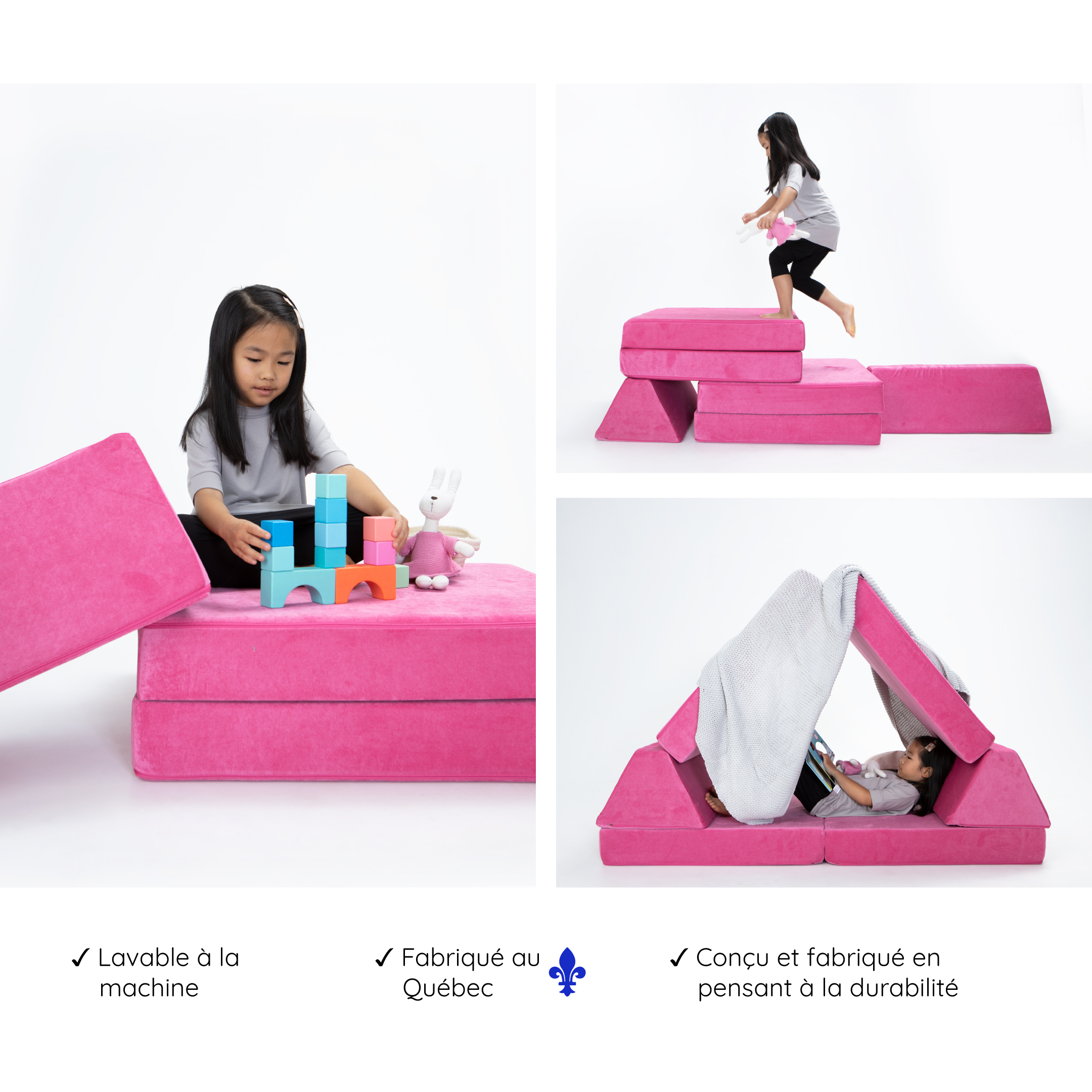 ✓ Nos poutres ont été conçues pour avoir la même longueur qu’un coussin de base afin d’augmenter les possibilités de construction grâce à plus de hauteur.