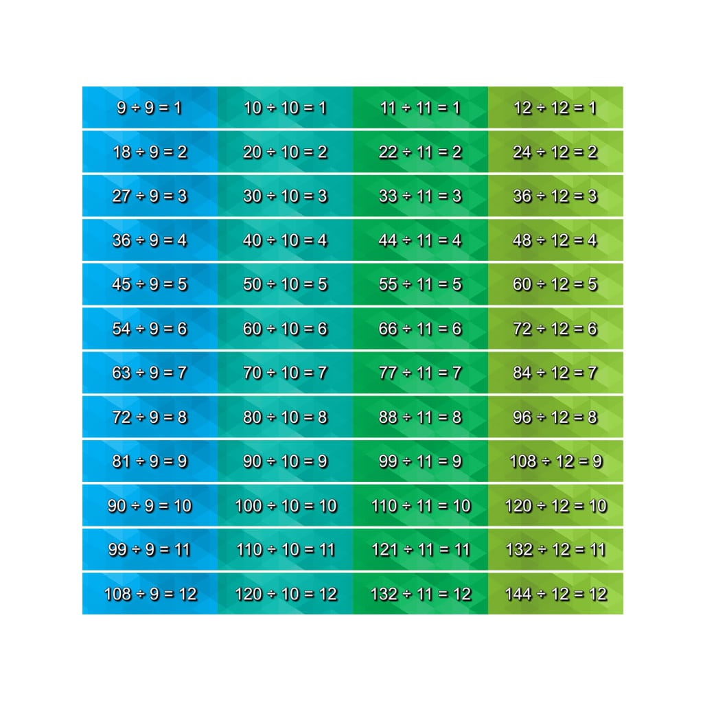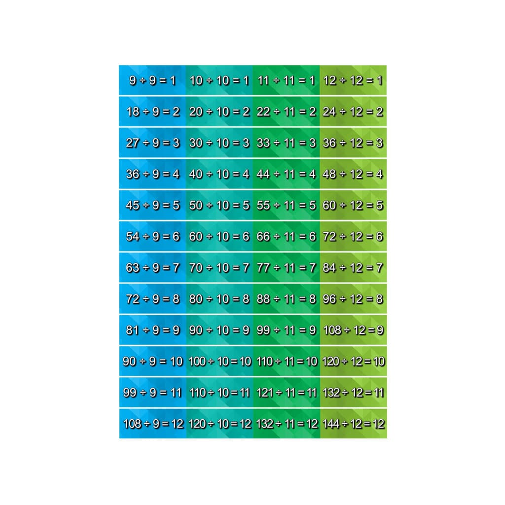 • Troisième ensemble de 12 contremarches présentant la table de division (9 à 12)
