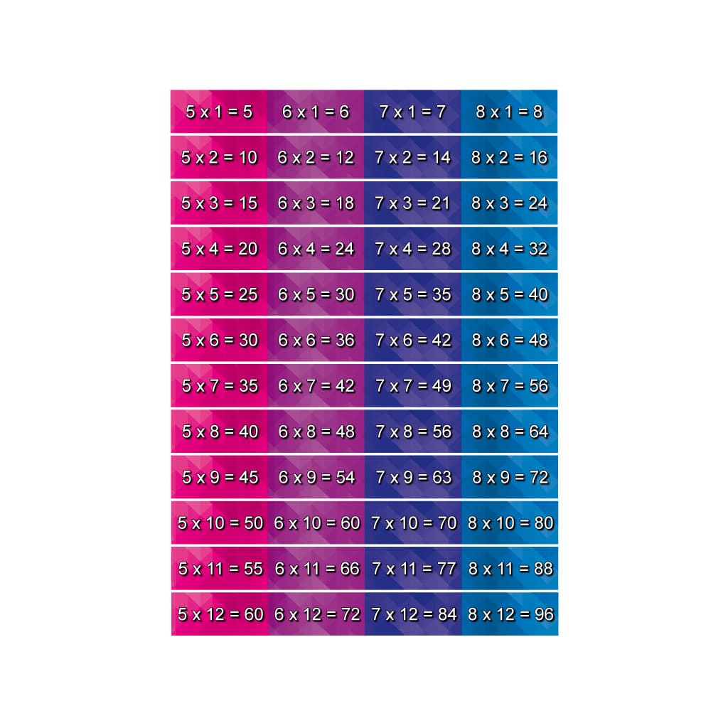 • Deuxième ensemble de 12 contremarches présentant la table de multiplication (5 à 8)