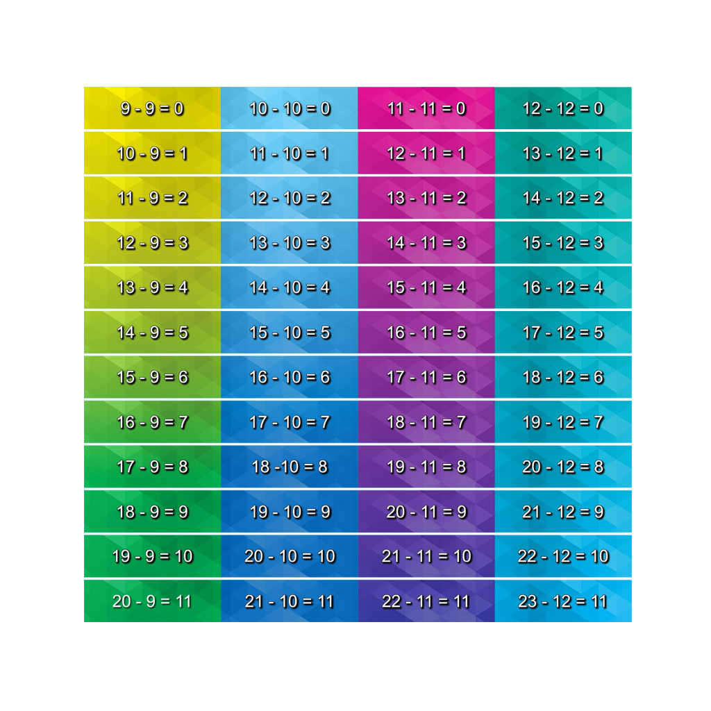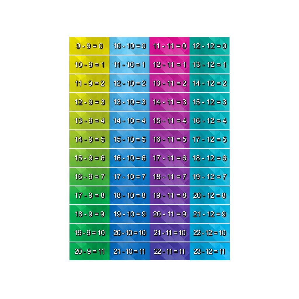 • Troisième ensemble de 12 contremarches présentant la table de soustraction (9 à 12)