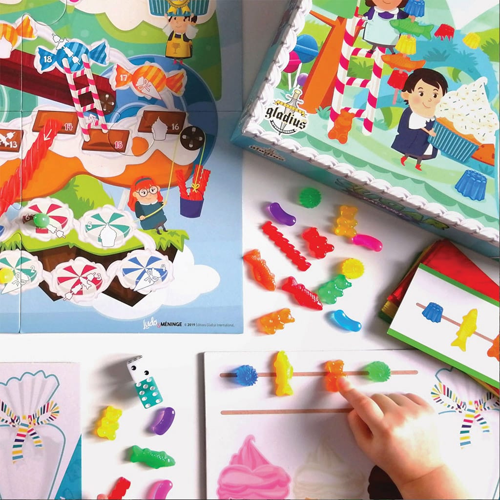 à mettre sur les gâteaux sélectionnés. Finalement, les défis cônes de bonbons transportent les enfants dans un duel où, pour sortir vainqueur de cette épreuve, il leur faudra faire preuve de logique mathématique et mettre à profit leurs capacités à résoudre des problèmes.