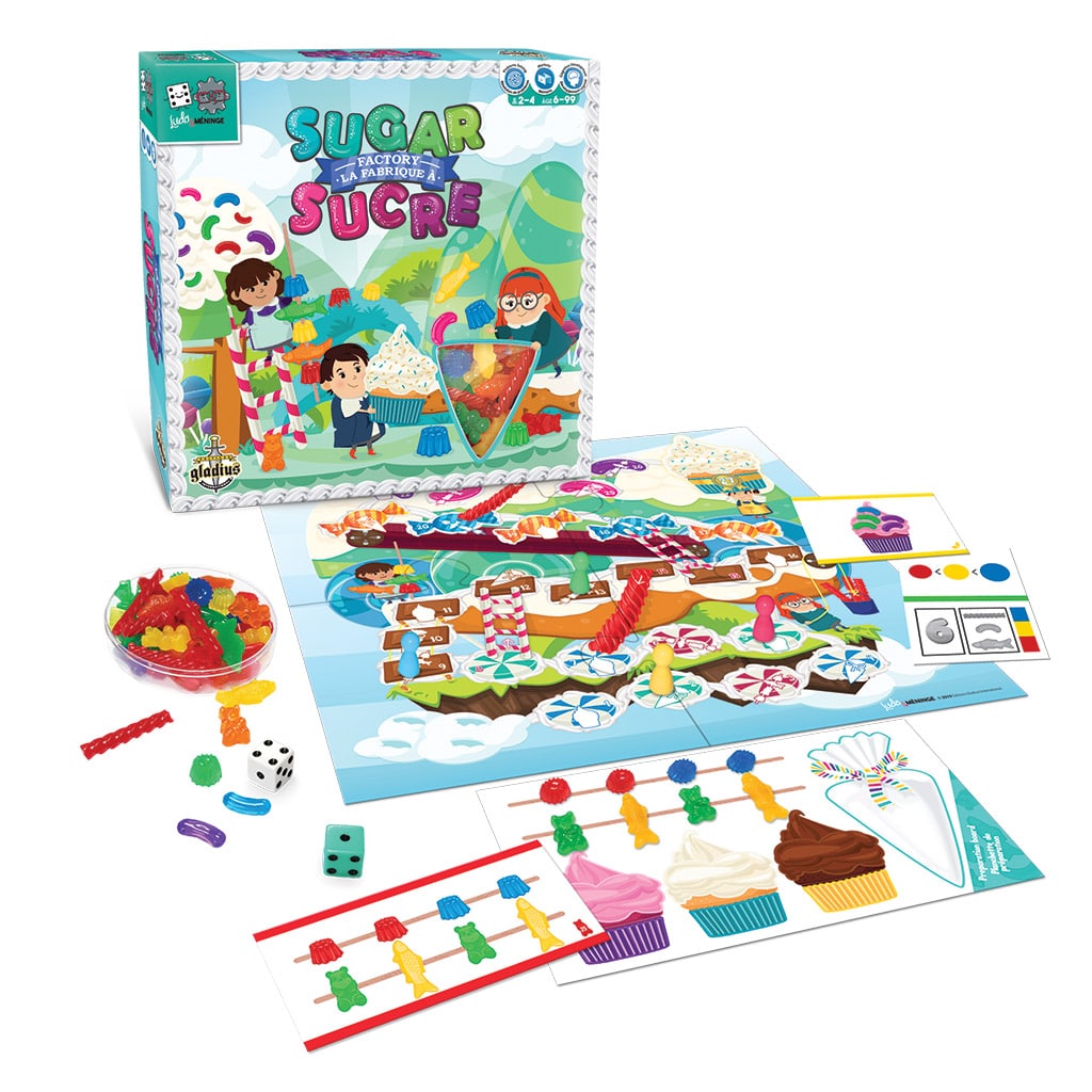 La fabrique à sucre propose une version réinventée du traditionnel jeu de Serpents et Échelles. Chacune des cases du plateau propose au joueur de relever un défi de confiserie qui fera appel à ses habiletés cognitives. Les défis brochettes de bonbons demandent au participant de mémoriser une suite de bonbons et de la reproduire à l’aide de sa mémoire visuelle. Les défis petits gâteaux exigent une bonne dose d’attention et un travail de la mémoire auditive puisque c’est un autre joueur qui dictera les décorations