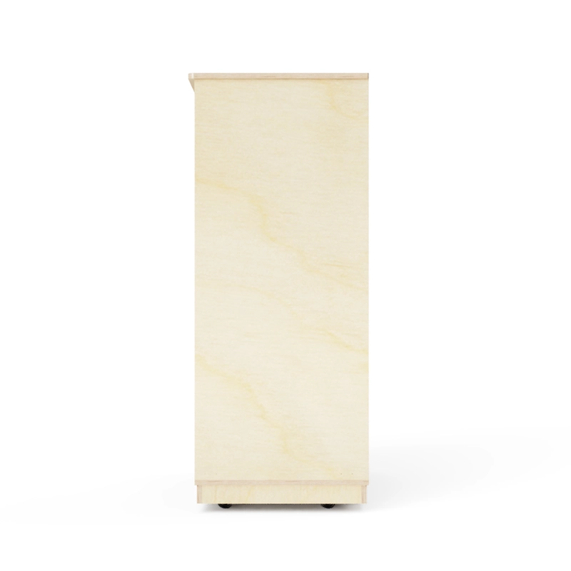 De dimensions différentes, ces meubles de rangement faciles d’entretien sont munis d’un cache-roulette qui protège les doigts des tout-petits.