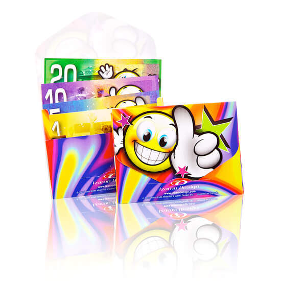 Ces petites boîtes de carton, semblables à des porte-monnaie, permettent aux enfants de conserver leurs billets bonus pour faire des économies. De plus, un espace est prévu sur le dessus des boîtes pour inscrire le nom de l’élève.