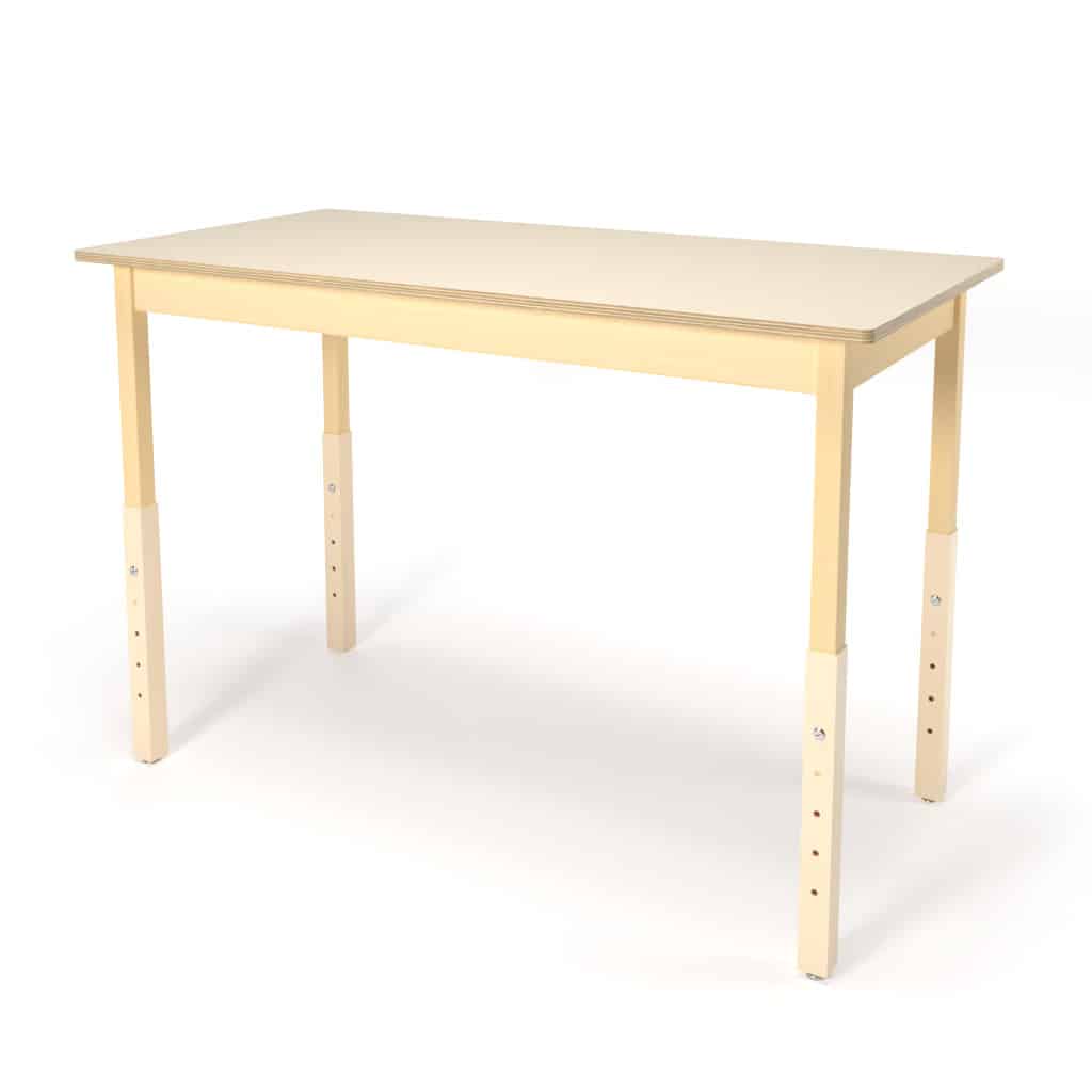 Réglables en hauteur et disponibles en 6 formes géométriques utiles, ces chaleureuses tables en bois sont pratiques pour tous genres d’activités.