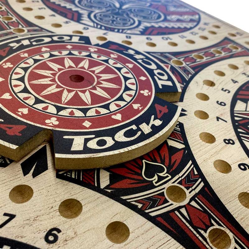 Cette grande planche de jeu de Tock cache un secret bien gardé… Elle se démonte en 5 morceaux pour un rangement facile dans la bibliothèque et s’assemble en quelques secondes à peine!